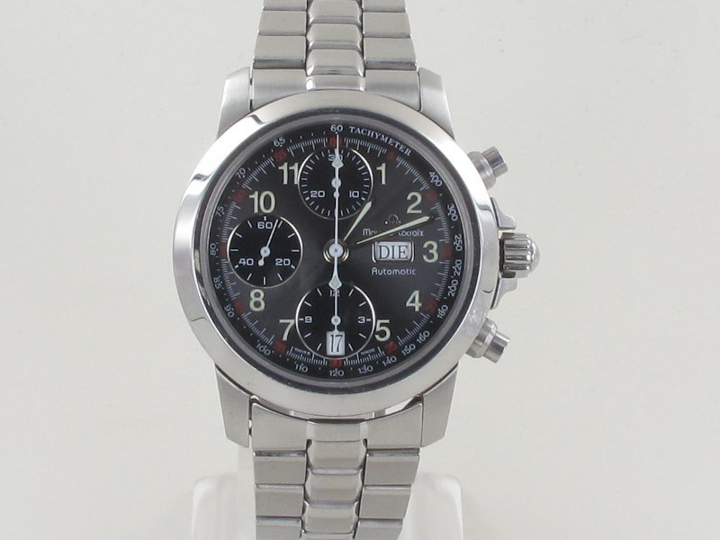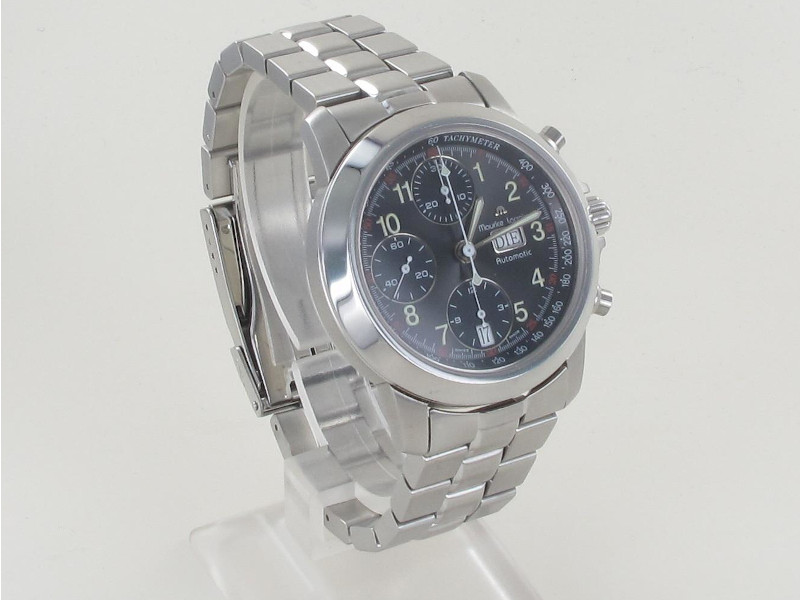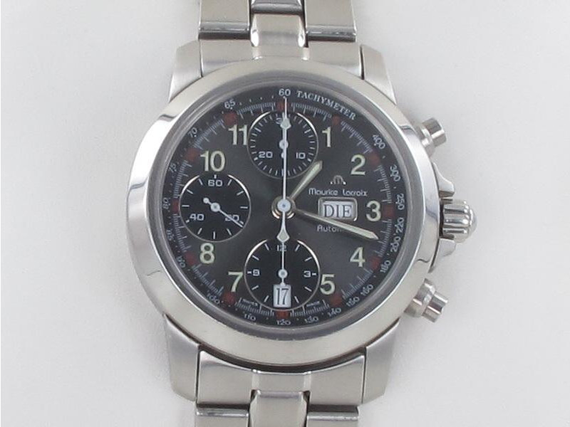 | Weitere Funktionen | Chronograph mit 12-Stunden- und 30-Minuten Zähler, Datum mit deutschen Day-Date Funktion mit Schnellschaltung, Stoppfunktion, kleine Sekunde, verschraubte Krone sowie Boden |